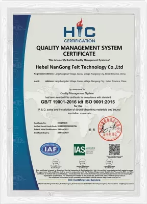 Hebei HeBei Felt Technology Co.,Ltd is a great factory of Acoustic Panels for more than 30 years in China. Our factory locates in NanGong City, Hebei Province, which covers an area of 200,000 square meters. We have 5 professional production lines, advanced machines, professional workers, strict QC Inspectors, skilled sales team, logistics transportation team, warm-hearted after-sales staffs working for clients from all over the world. These make our company take the leading position in the Acoustic Panels market.